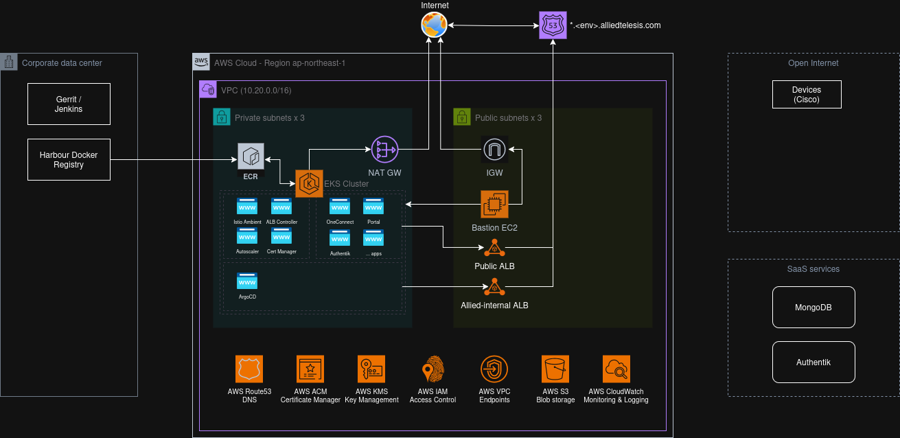 - Internal Load Balancer: Private entry point for our internal systems (ArgoCD, Dashboards, etc)